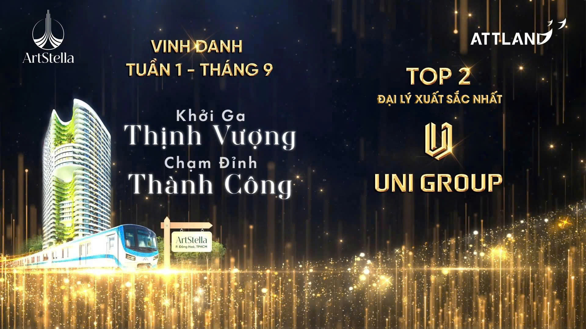 Trong tuần đầu tiên của tháng 9, hệ thống UNI GROUP đã vinh danh TOP 2 đại lý xuất sắc nhất tại dự án ArtStella. Đây là cột mốc quan trọng, thể hiện nỗ lực không ngừng của đội ngũ và khẳng định chiến lược phân phối chuyên nghiệp của Uni Group tại những dự án trọng điểm.